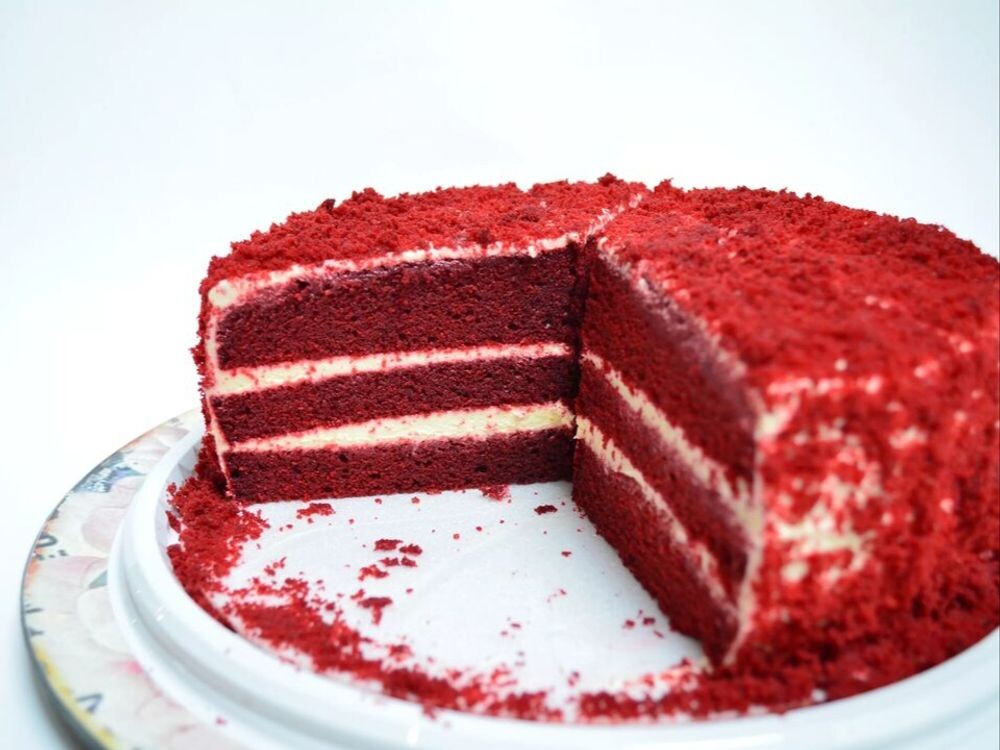 Яйца, кефир, сахар, пшеничная мука, красный пищевой краситель, какао-порошок, сливочный сыр, сливки, сахарная пудра