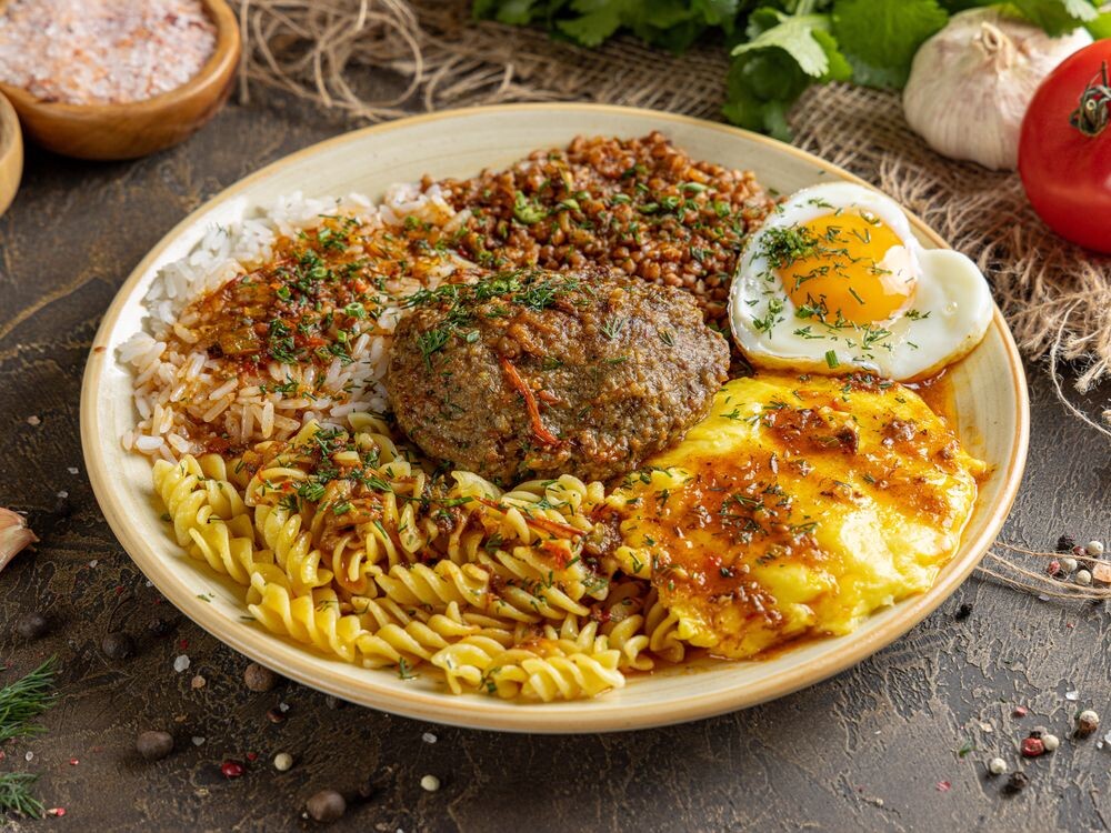 Котлета, гречка, макароны, рис, картофельное пюре